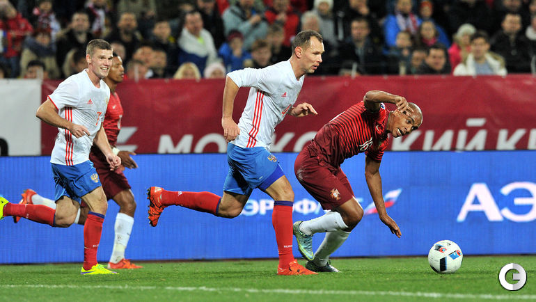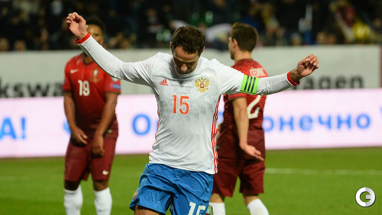 В первом товарищеском матче после окончания отборочного цикла чемпионата Европы-2016 сборная России выиграла у Португалии в Краснодаре – 1:0. Единственный мяч на 89-й минуте провел Роман Широков. Капитан завершил атаку с участием Игоря Денисова, Федора Смолова и Артема Дзюбы.