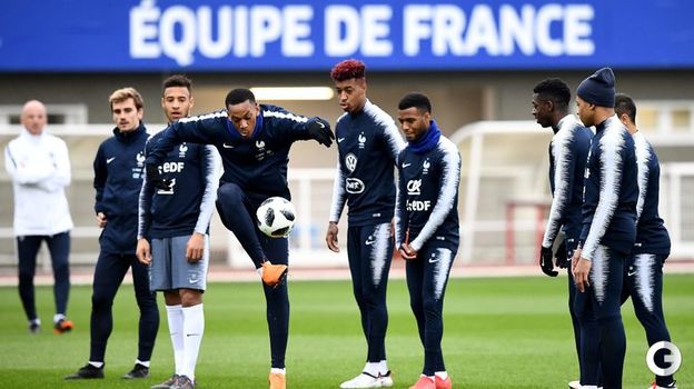 Перед поездкой в Санкт-Петербург сборная Франции под руководством главного тренера Дидье Дешама провела тренировку на своей базе в Клерфонтене с участием Антуана Гризманна, Поля Погба, Блеза Матюиди, Уго Льориса, Кильяна МБАППЕ и других звездных игроков команды.