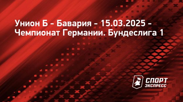 "СЭ" рад приветствовать всех любителей футбола! Здесь вас ждет онлайн-трансляция матча Унион Б (Берлин) – Бавария (Мюнхен). Чемпионат Германии. Бундеслига 1, 26-й тур Матч пройдет 15 марта 2025 года на стадионе Ан дер Альтен Ферстерай (Берлин, Германия). Начало - в 17:30 по московскому времени.