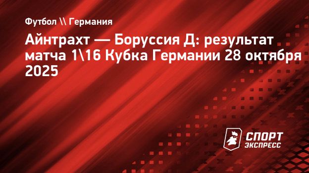 Дортмундская «Боруссия» в серии пенальти победила «Айнтрахт» в матче 1/16 Кубка Германии — 1:1, пенальти — 4:2. Игра прошла стадионе «Дойче Банк Парк».