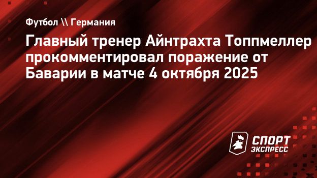 Главный тренер «Айнтрахта» Дино Топпмеллер прокомментировал поражение от «Баварии» (0:3) в домашнем матче чемпионата Германии.