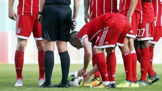 Рибери пошутил над женщиной-арбитром, развязав ей шнурок
