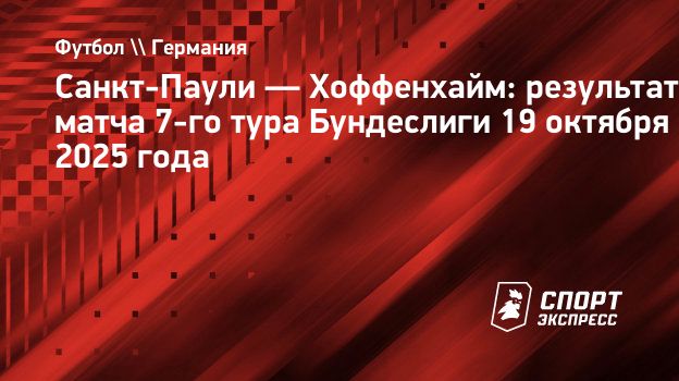 «Хоффенхайм» поднялся на восьмое место в турнирной таблице чемпионата Германии-2025/26 с 10 очками в 8 матчах. «Санкт-Паули» идет на 14-й строчке с 7 очками.