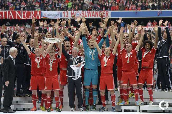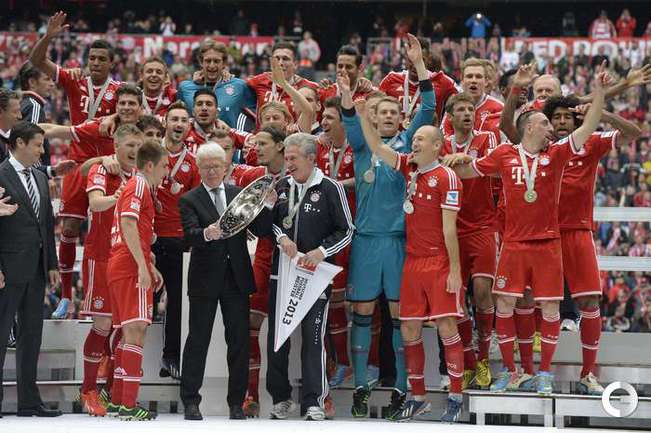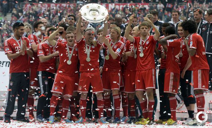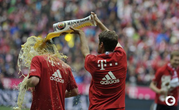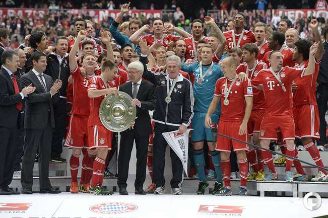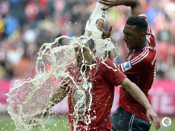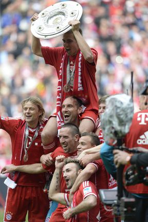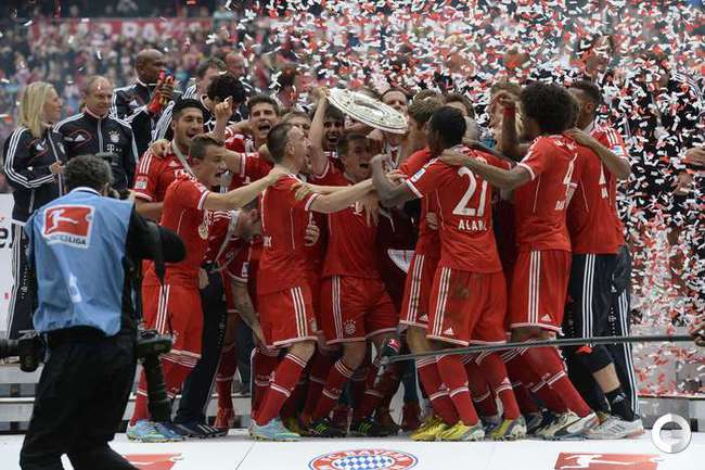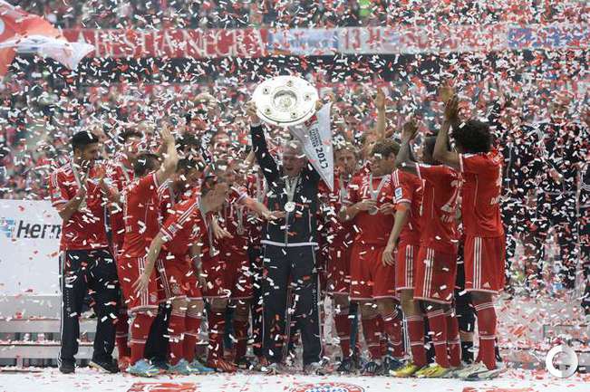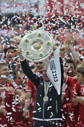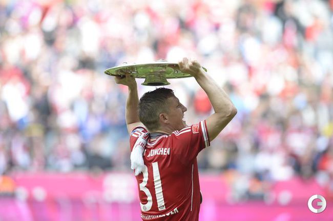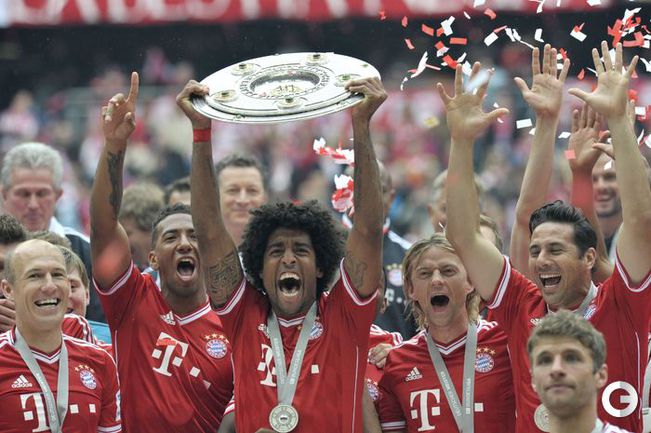 Сегодня в Мюнхене после завершения матча, в рамках 33-го тура чемпионата Германии против "Аугсбурга", "Баварии" были вручены золотые медали за победу в первенстве. Фото AFP