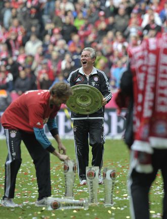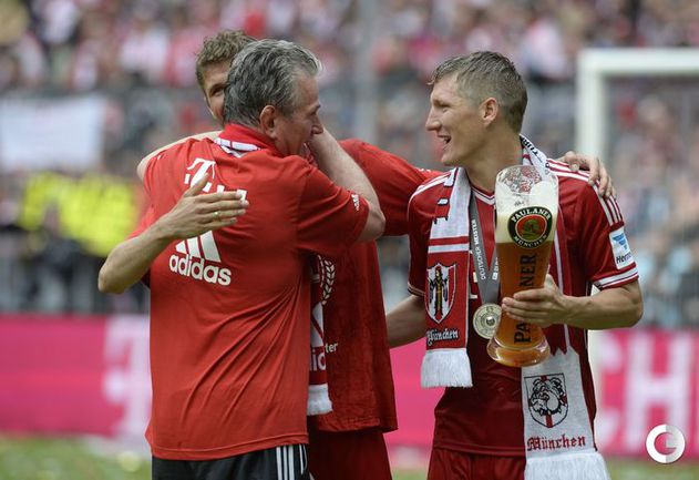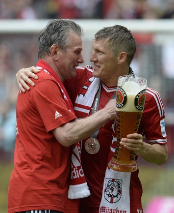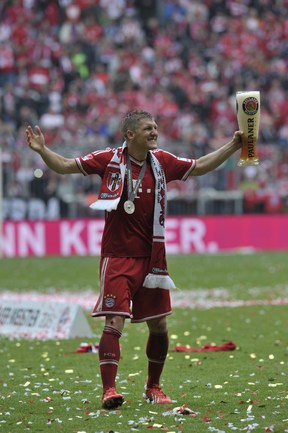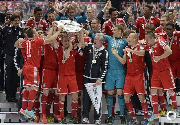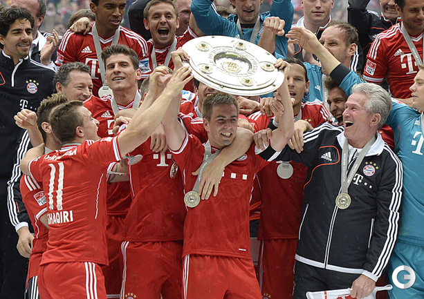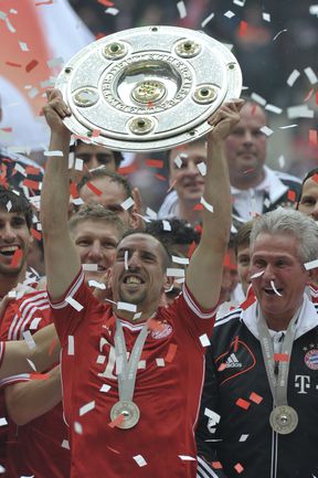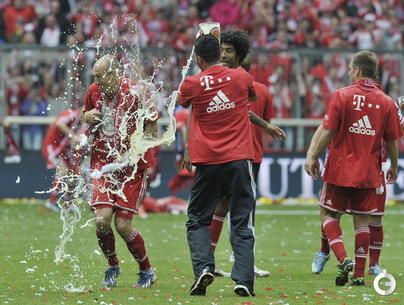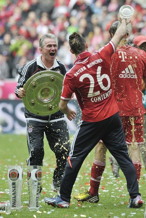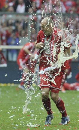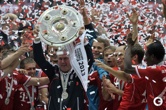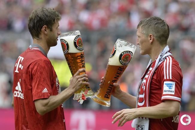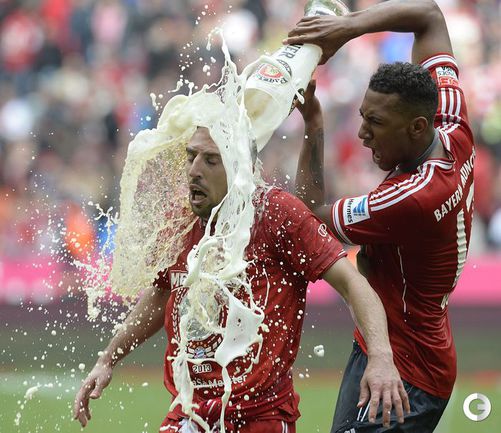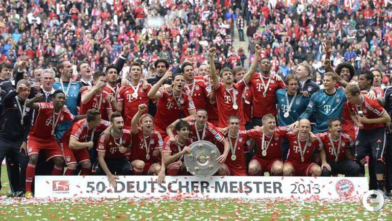 Сегодня в Мюнхене после завершения матча, в рамках 33-го тура чемпионата Германии против "Аугсбурга", "Баварии" были вручены золотые медали за победу в первенстве. Фото AFP