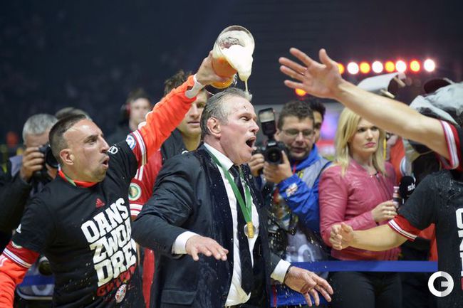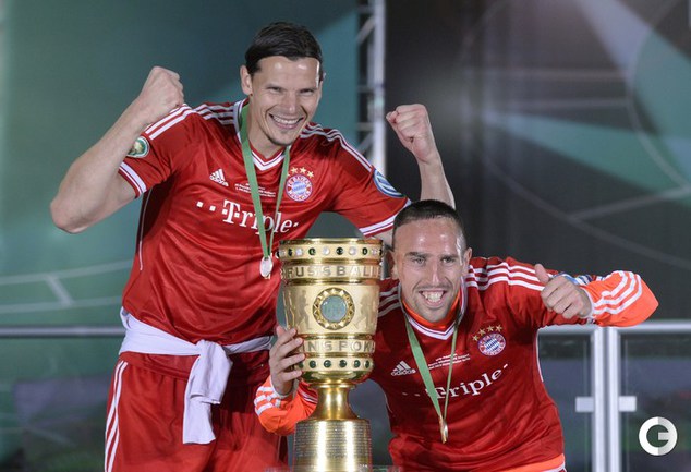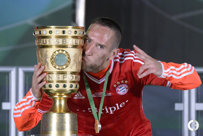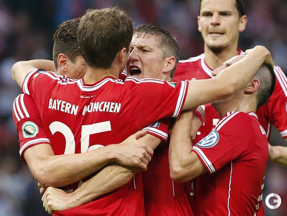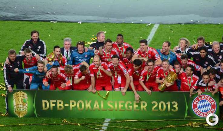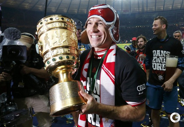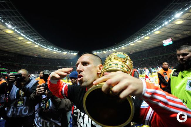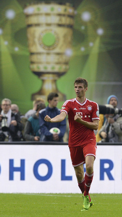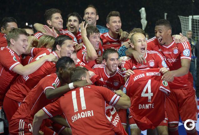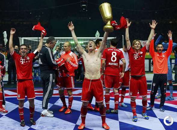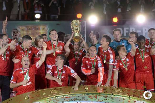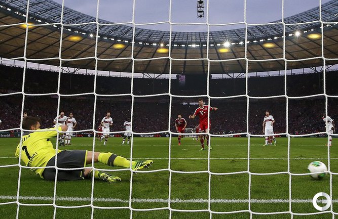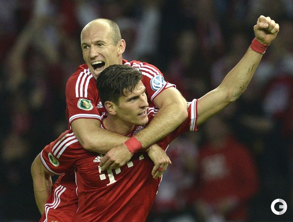 Футбол. Кубок Германии. Финал. "Бавария" - "Штутгарт" - 3:2 (1:0). Голы: Мюллер, 37, с пенальти (1:0). Гомес, 48 (2:0). Гомес, 61 (3:0). Харник, 71 (3:1). Харник, 80 (3:2). "Бавария" победила "Штутгарт" в финале Кубка Германии – 3:2. Таким образом мюнхенцы оформили золотой хет-трик. Ранее команда Юппа Хайнкеса выиграла чемпионат Германии и Лигу чемпионов. Фото AFP и REUTERS