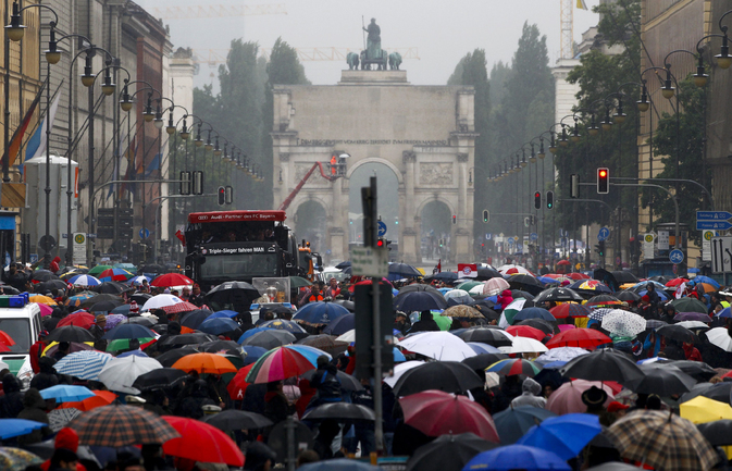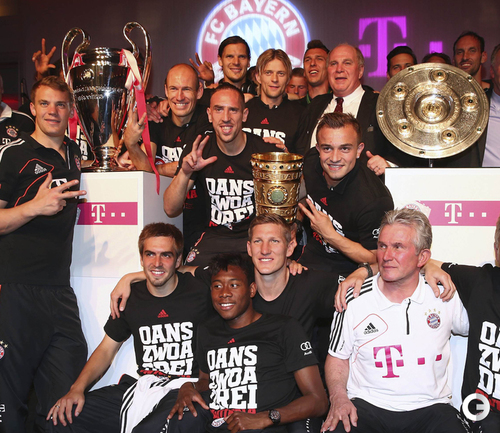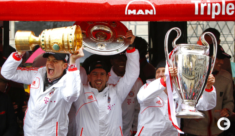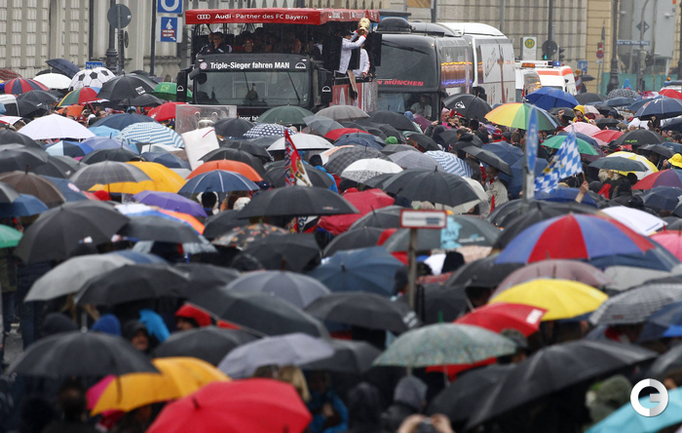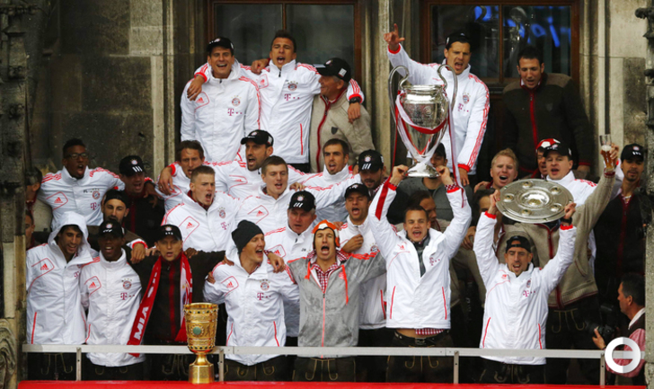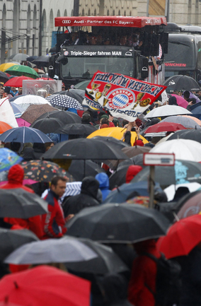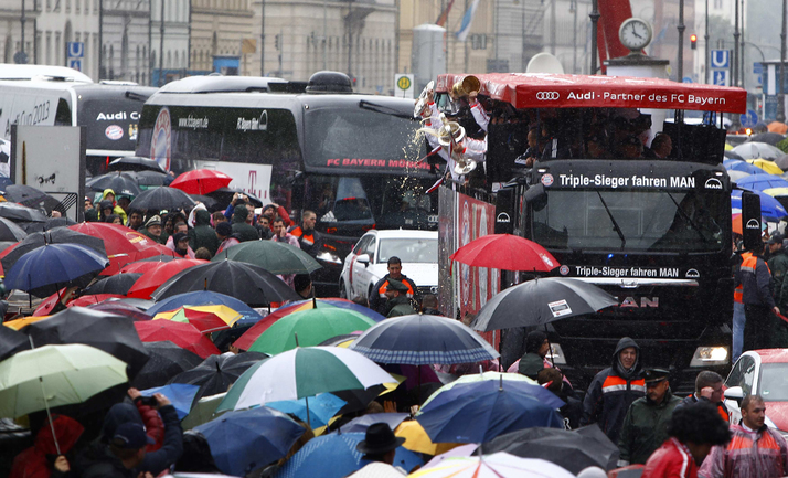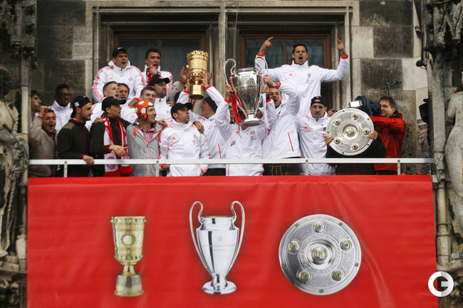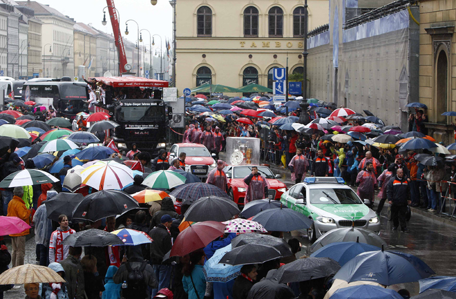 Игроки и тренерский состав "Баварии" проехали по улицам Мюнхена и показали болельщикам трофеи, завоеванные в этом сезоне. Фото REUTERS
