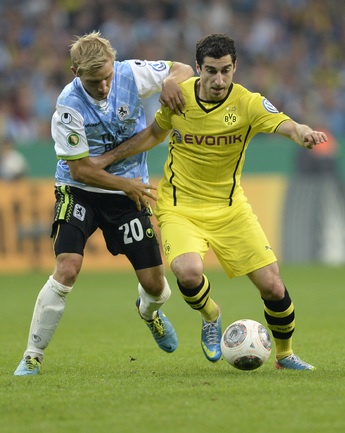 Футбол. Кубок Германии. 1/16 финала. "Мюнхен-1860" – "Боруссия" Д – 0:2 (0:0, 0:1). Голы: Обамеянг, 105 – с пенальти (0:1). Мхитарян (0:2). Фото AFP