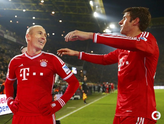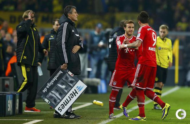 "Бавария" в гостевом матче 13-го тура чемпионата Германии разгромила дортмундскую "Боруссию" со счетом 3:0. Отметим, что все голы баварцы забили во втором тайме, с 66-й по 87-ю минуты. Голы на счету Марио Гетце, для которого это была первая встреча со своей бывшей командой, Арьена Роббена и Томаса Мюллера. Фото AFP, REUTERS