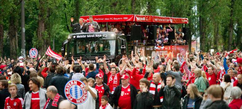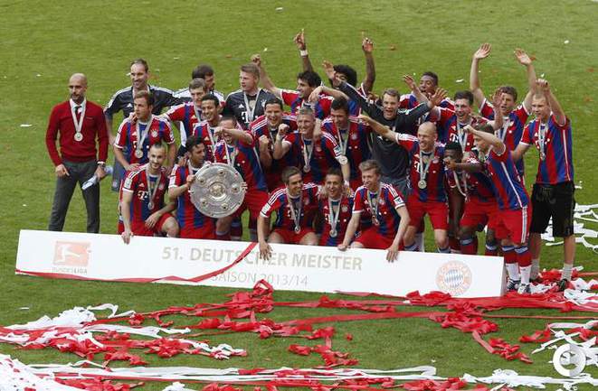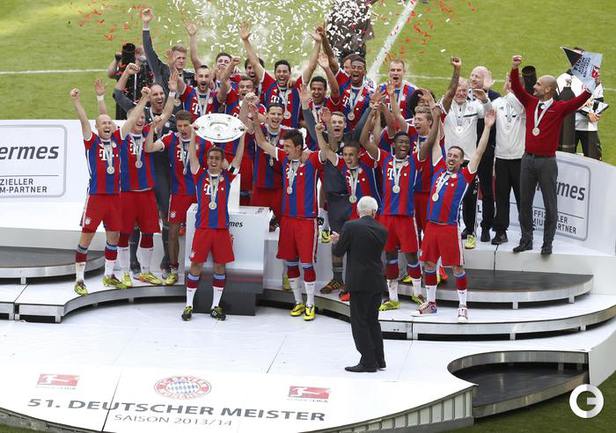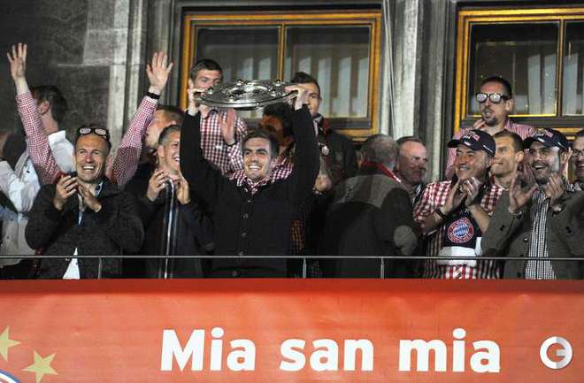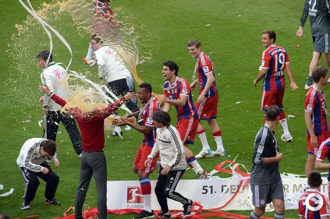 Игроки и тренерский состав "Баварии" отметили завоевание титула чемпионов немецкого первенства. Фото AFP, REUTERS
