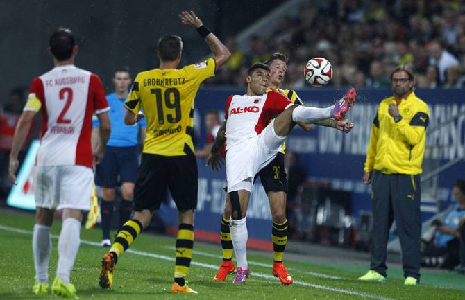 Чемпионат Германии. Бундеслига 1. 2-й тур. "Аугсбург" – "Боруссия Д" – 2:3 (0:2). Голы: Ройс, 11 (0:1). Папастатопулос, 14 (0:2). Рамос, 78 (0:3). Бобадилья, 82 (1:3). Матавж, 90 (2:3). Фото AFP, REUTERS