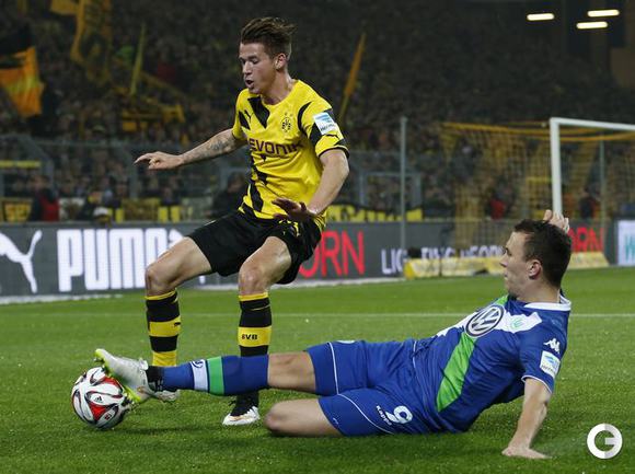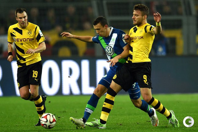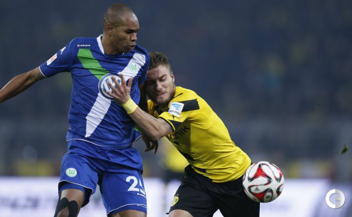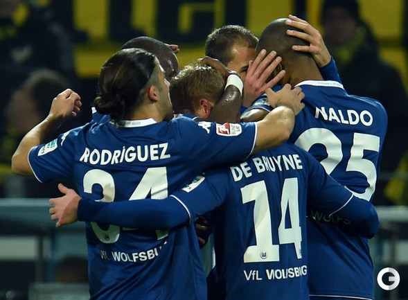 Чемпионат Германии. Бундеслига. 16-й тур. "Боруссия" Д – "Вольфсбург" – 2:2. Голы: Обамеянг, 8 (1:0). Де Брейне, 29 (1:1). Иммобиле, 76 (2:1). Налду, 85 (2:2). Фото AFP, REUTERS