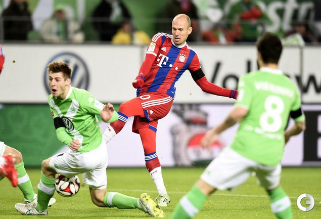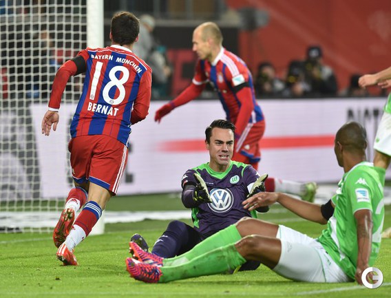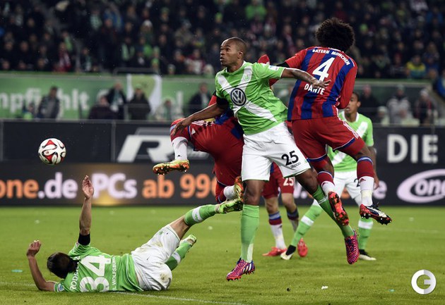 Чемпионат Германии. Бундеслига. 18-й тур. "Вольфсбург" – "Бавария" – 4:1. Голы: Дост, 4 (1:0). Дост, 45+2 (2:0). Де Брейне, 53 (3:0). Бернат, 55 (3:1). Де Брейне, 73 (4:1). Фото AFP, REUTERS