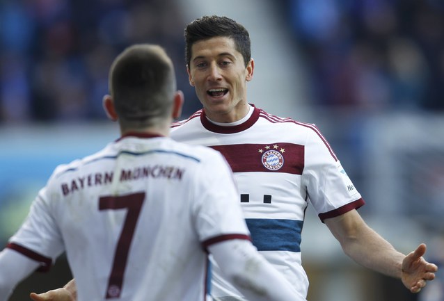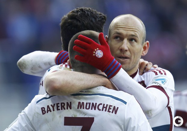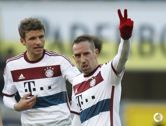 Чемпионат Германии. Бундеслига. 22-й тур. "Падерборн" – "Бавария" – 0:6. Голы: Левандовски, 24 (0:1). Левандовски, 37 (0:2). Роббен, 63 – с пенальти (0:3). Рибери, 72 (0:4). Вайзер, 78 (0:5). Роббен, 86 (0:6). Фото AFP, REUTERS
