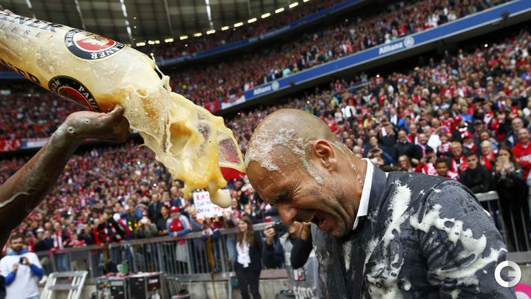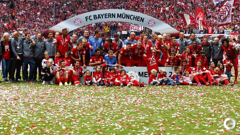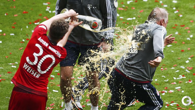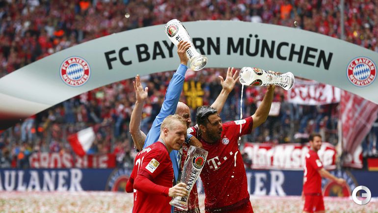 После победы в заключительном матче сезона против "Манйца" игроки и тренерский состав "Баварии" отпраздновали завоевание чемпионского титула. Фото AFP, REUTERS
