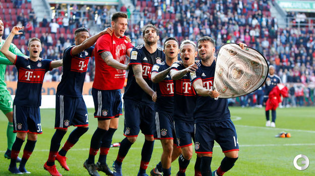 "Бавария" стала чемпионом Германии в сезоне-2017/18. В игре 29-го тура мюнхенцы победили "Аугсбург" – 4:1 – и оторвались от "Шальке" на 20 очков. Для "Баварии" это 28-й титул чемпиона страны в истории и шестой подряд.