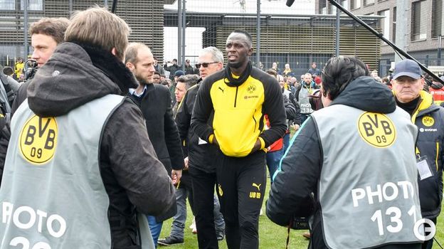Восьмикратный олимпийский чемпион по легкой атлетике Усэйн Болт провел тренировку в составе дортмундской "Боруссии". Ямайский спринтер работал в общей группе без ограничений, после чего продемонстрировал мастерство исполнения пенальти и пообщался с журналистами.