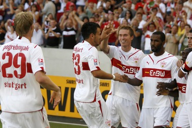 Первую острую комбинацию "Штутгарта" начал Погребняк, отдавший пас Глебу. Тот нашел в центре поля Хедиру, который тут же вывел Какау почти один на один с вратарем Зальцем. Но бразильский форвард сборной Германии из выгоднейшей позиции промахнулся. Пожалуй, это был единственный голевой момент хозяев в первом тайме. Погребняк очень старался, возвращался в защиту при "стандартах", все время предлагал себя в атаке, но партнеры не очень часто вознаграждали его передачами. Рвение россиянина не могло не остаться не замеченным трибунами: к середине тайма чуть ли не каждое касание им мяча болельщики встречали аплодисментами.