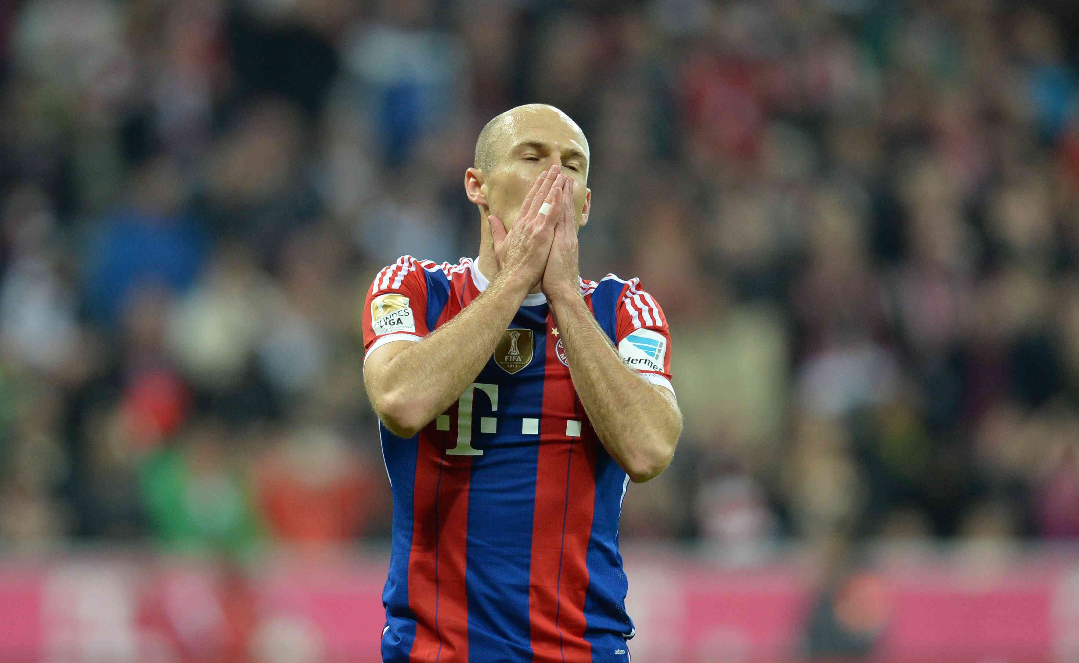 Арьен РОББЕН и стена поддержки. Фото – AFP