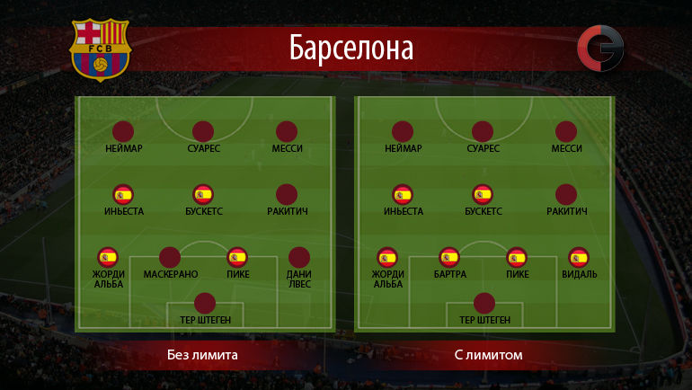 Не так давно в составе "Барселоны" могли выйти и десять испанцев, не считая Месси, причем качество игры от этого не страдало. Но сейчас у каталонцев нет своего вратаря, да и атака сплошь южноамериканская. Очень кстати сине-гранатовые приобрели у "Севильи" Видаля, который способен безболезненно заместить Дани Алвеса. А вот с шестым лишним проблемы: Бартра – совсем не равноценная замена Маскерано. Но бесчувственному лимиту все равно.