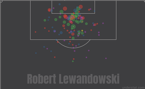 3. Эффективно работает связка Мюллер — Левандовски. Во-первых, за них говорит статистика: Томас — лучший ассистент бундеслиги (19), а Роберт — бомбардир (31). Поляк больше не испытывает проблем с реализацией (наиграл на 28,62 xG), а также еще грамотнее выбирает позицию в штрафной (30 голов забил из ее пределов):
