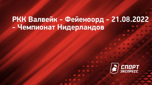"СЭ" рад приветствовать всех любителей футбола! Здесь вас ждет онлайн-трансляция матча РКК Валвейк (Валвейк) – Фейеноорд (Роттердам). Чемпионат Нидерландов, 3-й тур Матч пройдет 21 августа 2022 года на стадионе Мандемакерс (Валвейк, Нидерланды).