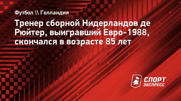 Тренер сборной Нидерландов де Рюйтер, выигравший Евро-1988, скончался в возрасте 85 лет
