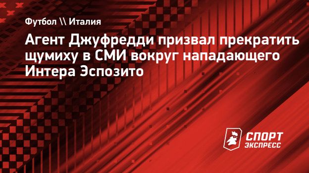 Агент нападающего «Интера» Франческо Эспозито Марио Джуфредди отметил, что уровень ажиотажа вокруг форварда начал превышать допустимый для молодого игрока.