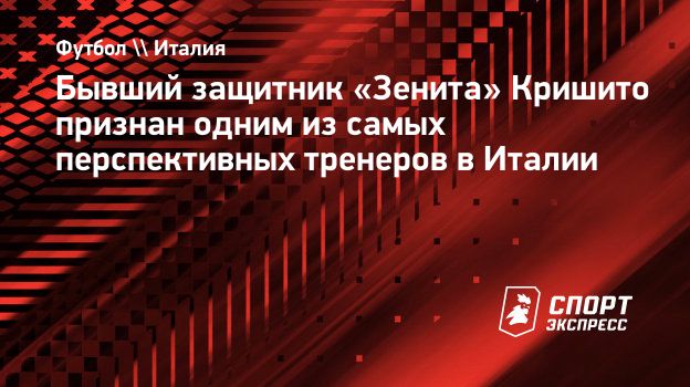 Бывший защитник «Зенита» Кришито признан одним из самых перспективных тренеров в Италии