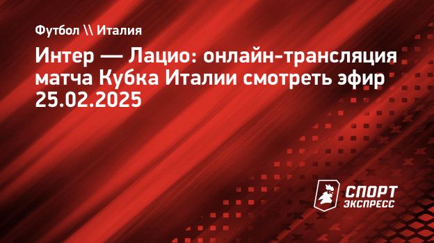 «Интер» и «Лацио» сыграют в 1/4 финала Кубка Италии во вторник, 25 февраля. Матч в Милане (Италия) на стадионе «Сан-Сиро» («Джузеппе Меацца») начнется в 23.00 по московскому времени.