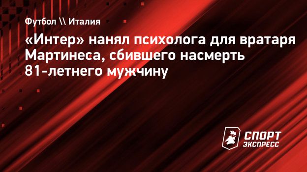 «Интер» нанял психолога для вратаря Мартинеса, сбившего насмерть 81-летнего мужчину