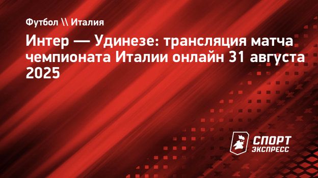 «Интер» и «Удинезе» встречаются в матче второго тура итальянской серии А в воскресенье, 31 августа. Игра пройдет на стадионе «Джузеппе Меацца» в Милане, стартовый свисток прозвучит в 21.45 по московскому времени.