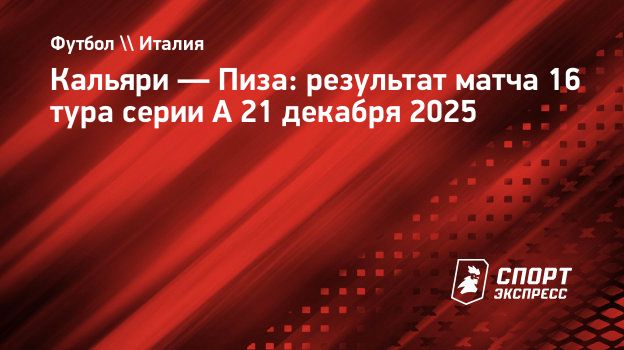| 21.12 | 14:30 | Кальяри – Пиза | 2 : 2 |