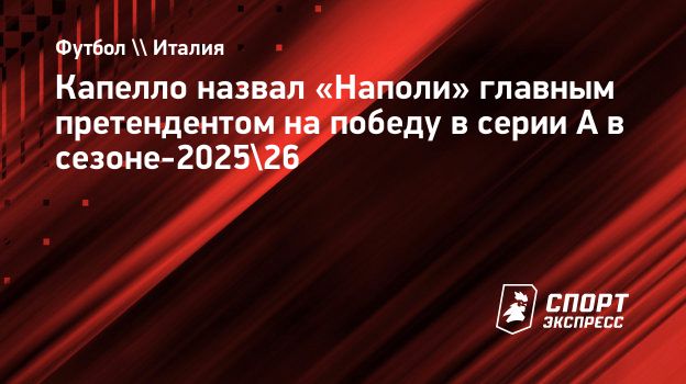 Бывший главный тренер «Милана», «Ромы» и «Ювентуса» Фабио Капелло считает «Наполи» фаворитом серии А в сезоне-2025/26. На второе место он поставил «Интер».