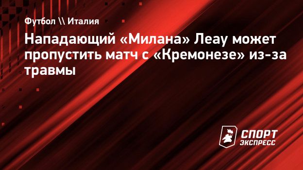 По данным источника, речь идет о травме икроножной мышцы, которую 26-летний португалец получил в игре 1/32 финала Кубка Италии против «Бари» (2:0). В этой встрече Леау открыл счет на 14-й минуте. На 17-й минуте его заменили.