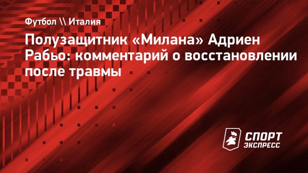 Полузащитник «Милана» Адриен Рабьо рассказал, как проходит его восстановление после травмы икроножной мышцы.
