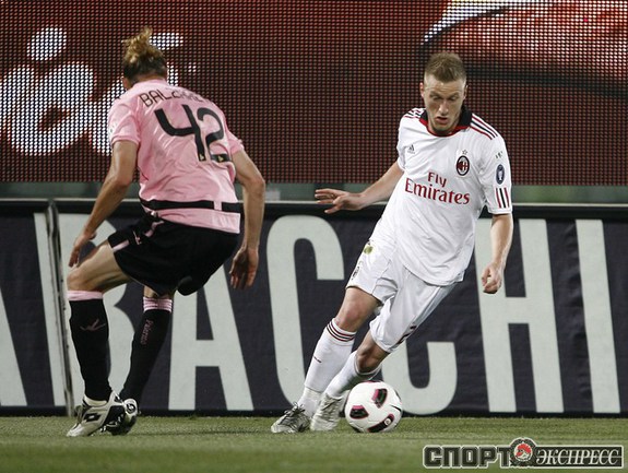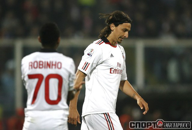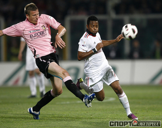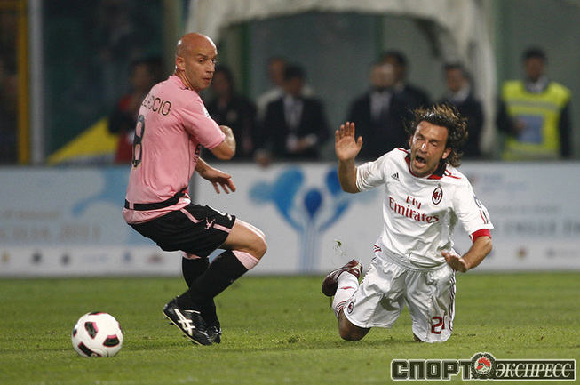 Кубок Италии. 1/2 финала. Второй матч. "Палермо" - "Милан" - 2:1 (0:0). Голы: Мильяччо, 63 (1:0). Бово, 73, с пенальти (2:0). Ибрагимович, 90+4 (2:1). Удаления: Ван Боммел (Милан), 72. Бово (Палермо), 75. Первый матч - 2:2. Фото AFP