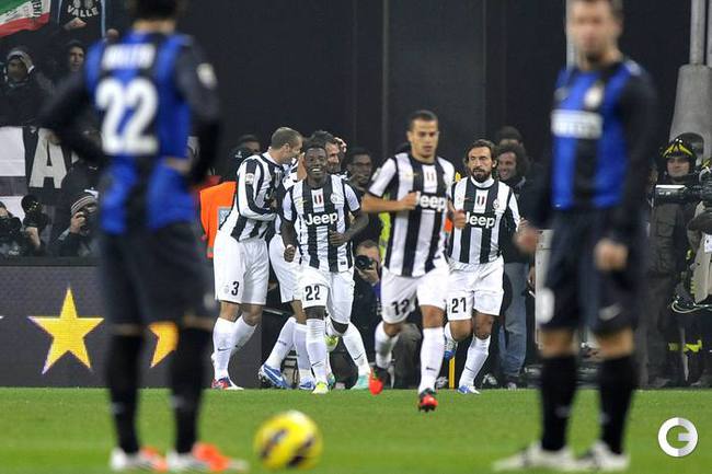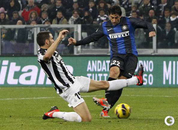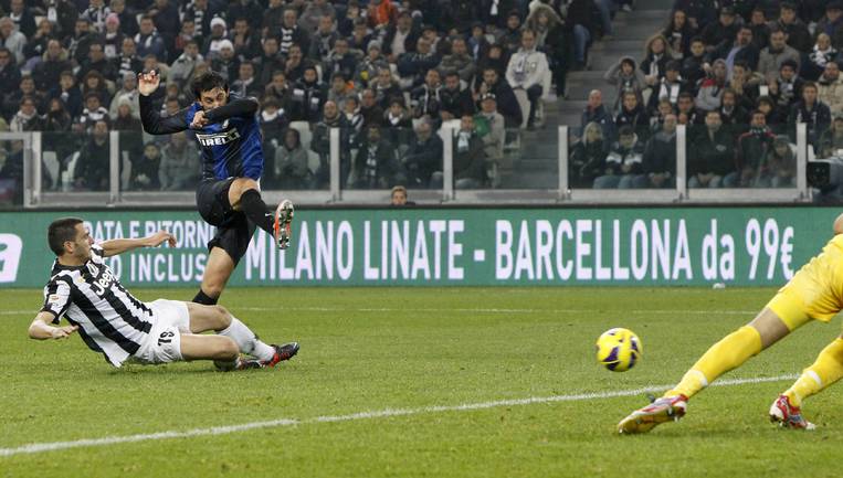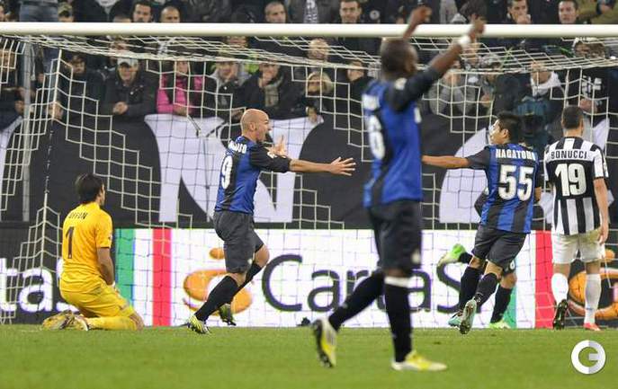 Футбол. Чемпионат Италии. Серия А. 11-й тур. ЮВЕНТУС - ИНТЕР - 1:3 (1:0). Голы: Видаль, 1 (1:0). Милито, 59 - с пенальти (1:1). Милито, 75 (1:2). Паласио, 89 (1:3). (1:0). Голы: Видаль, 1 (1:0). Милито, 59 - с пенальти (1:1). Милито, 75 (1:2). Паласио, 89 (1:3). До этого поединка туринцы не покидали поле побежденными в серии А 48 игр подряд. В последний раз "Юве" проигрывал в чемпионате 15 мая 2011 года "Парме". Фото REUTERS