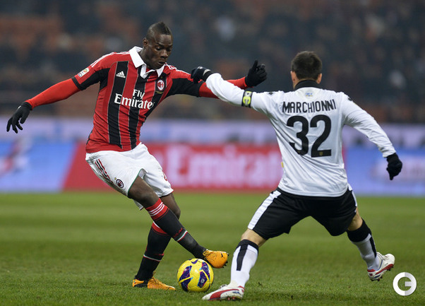 Чемпионат Италии. Серия А. 26-й тур. Милан. "Милан" – "Парма" - 2:1. Голы: Палетта, 39 - в свои ворота (1:0). Балотелли, 78 (2:0). Сансоне, 90 (2:1). Фото AFP, REUTERS
