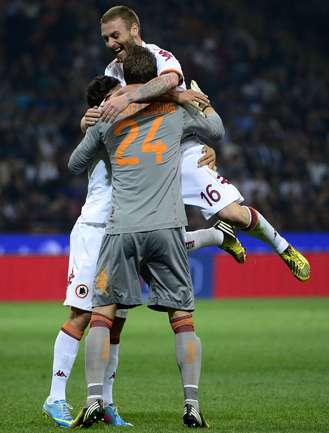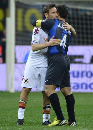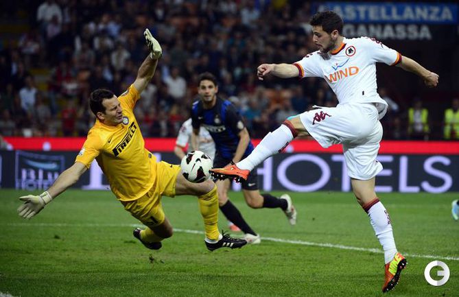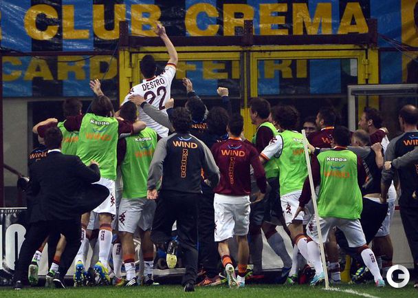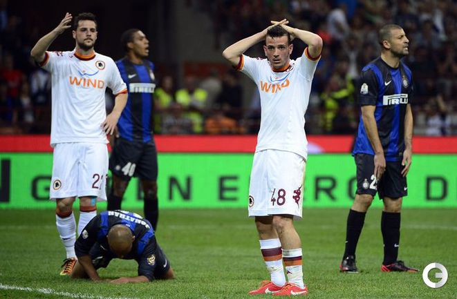 Кубок Италии. 1/2 финала. Ответный матч. "Интер" – "Рома" – 2:3 (1:0). Голы: Жонатан, 21 (1:0). Дестро, 55 (1:1). Дестро, 69 (1:2). Торосидис, 74 (1:3). Альварес, 80 (2:3). По сумме двух поединков (2:1, 3:2) римляне одержали победу и таким образом в финале сыграют с "Лацио". Фото AFP