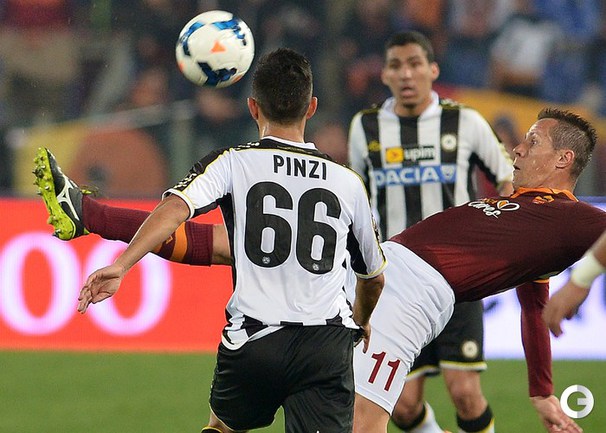 Футбол. Чемпионат Италии. 28-й тур. "Рома" - "Удинезе" - 3:2 (2:0). Голы: Тотти, 22 (1:0). Дестро, 30 (2:0). Пинци, 51 (2:1). Торосидис, 69 (3:1). Баста, 80 (3:2). "Торино" – "Наполи" – 0:1. Гол: Игуаин, 90 (0:1). Фото AFP