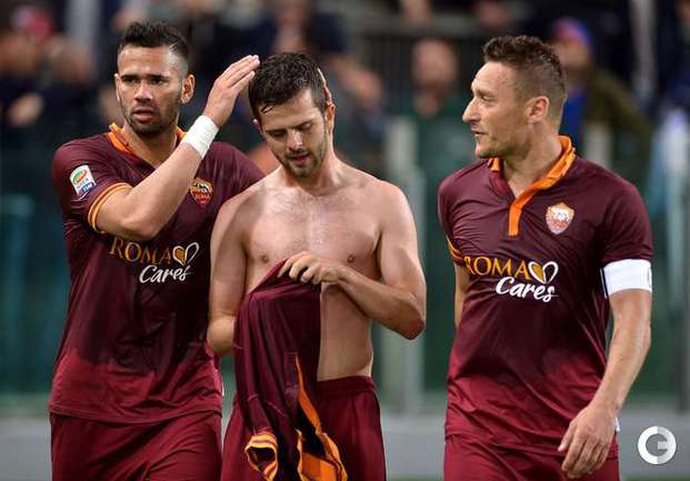 В матче 35-го тура чемпионата Италии "Рома" на своем поле обыграла "Милан" со счетом 2:0. На этом поединке прервалась победная серия миланского клуба в серии А, которая составляла пять матчей. Для римлян эта победа стала девятой подряд. "Рома" – "Милан" – 2:0. Голы: Пьянич, 43 (1:0). Жервинью, 65 (2:0). Фото AFP, REUTERS