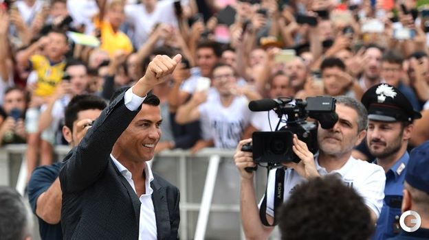 Новичок "Ювентуса", капитан сборной Португалии Криштиану Роналду прибыл на домашний стадион чемпиона Италии для прохождения медосмотра и презентации. 33-летнего форварда, трансфер которого обошелся "Старой синьоре" в 112 миллионов евро (зарплата - 30 миллионов в год), встречали несколько тысяч болельщиков клуба из Турина.