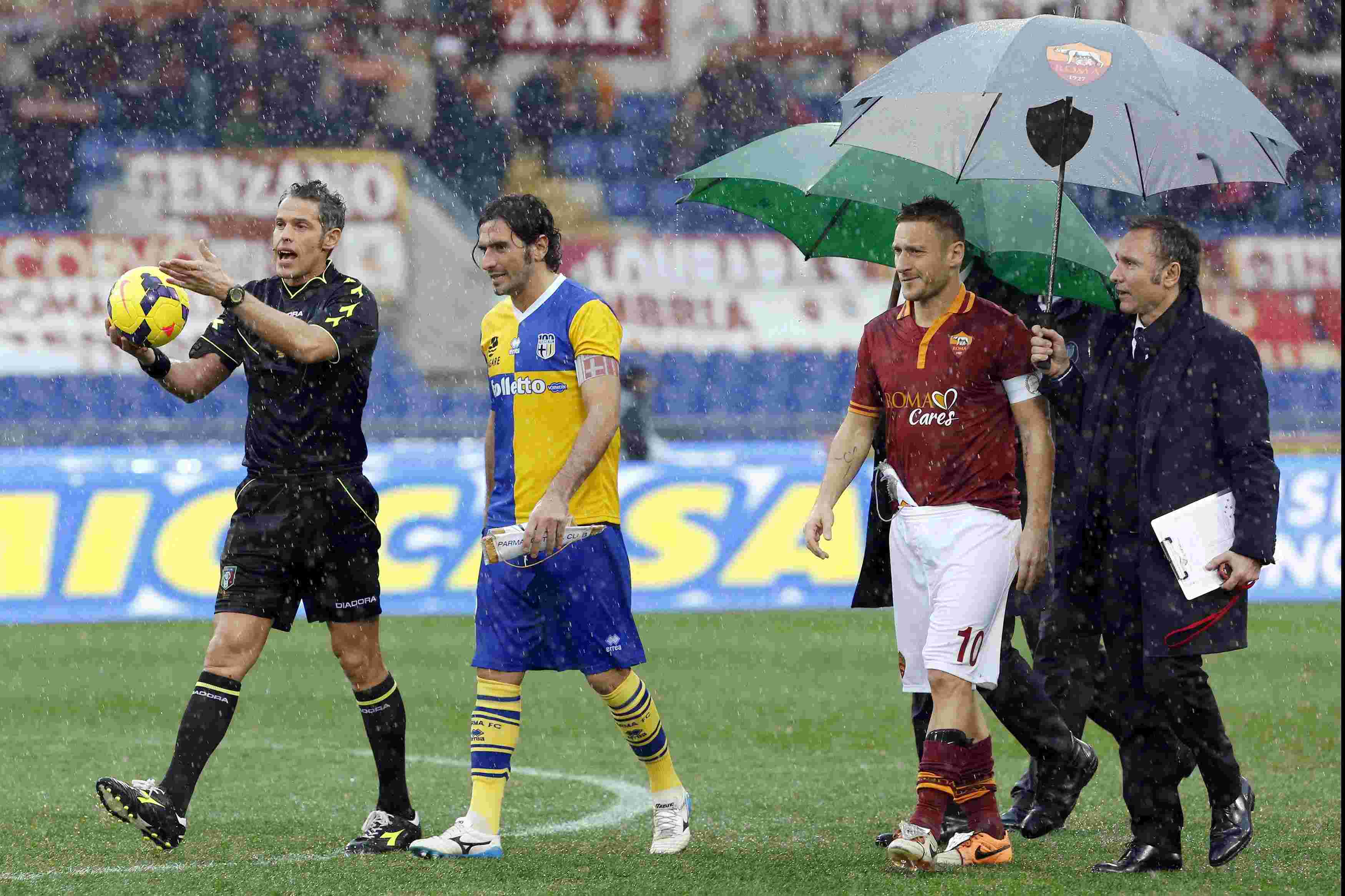 Весьма любопытным на фоне остальных матчей тура, даже несмотря на наличие двух дерби, виделась встреча между "Ромой" и "Пармой". Столичная команда после крупного поражения в начале января от "Ювентуса" рвет и мечет, а подопечные Роберто Донадони не проигрывают аж со 2 ноября прошлого года. К сожалению, насладиться противостоянием таких мастеров, как Тотти и Кассано, нам было не суждено – вмешалась капризная римская погода. Из-за обрушившегося ливня к 10-й минуте на поле образовались глубокие лужи, исключившие возможность передач низом. Главный арбитр Андреа Де Марко, понимая, что происходящее все меньше и меньше напоминает футбол, принял решение остановить встречу и провел несколько тестов, подбрасывая мяч рукой и оценивая отскок от газона в разных частях поля. Футболисты и зрители с любопытством наблюдали за экспериментами судьи, длившимися несколько минут, но про этом понимали: игра в этой день уже не возобновится. Новую дату организаторы объявят в ближайшее время.