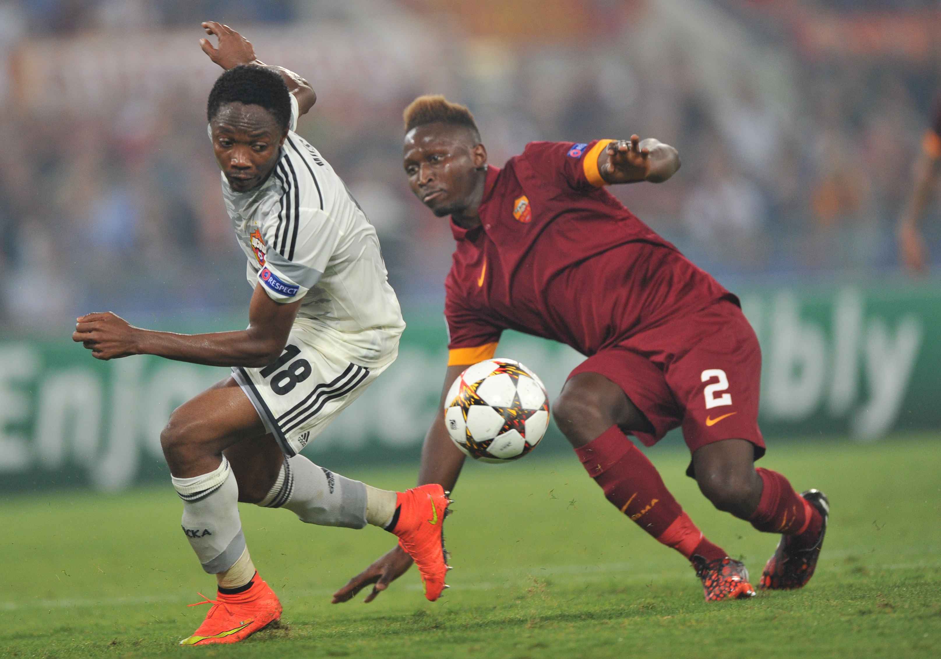 17 сентября 2014. Рим. "Рома" – ЦСКА – 5:1. Нападающий армейцев Ахмед МУСА против защитника "ромы" Мапу ЯНГА-МБИВА. Фото - Александр Федоров, "СЭ"