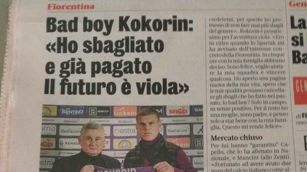 La Gazzetta dello Sport: «Bad boy Кокорин: «Я ошибся и расплатился за это. Мое будущее — «Фиорентина».