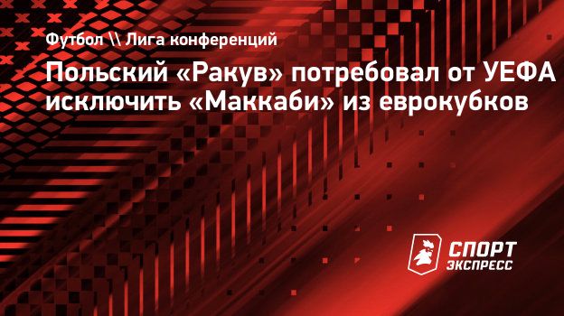 Польский «Ракув» выступил с обращением к УЕФА с требованием исключить «Маккаби» из Хайфы из розыгрыша еврокубков в сезоне-2026/27 после демонстрации политического баннера во время ответного матча команд в третьем отборочном раунде Лиги конференций.
