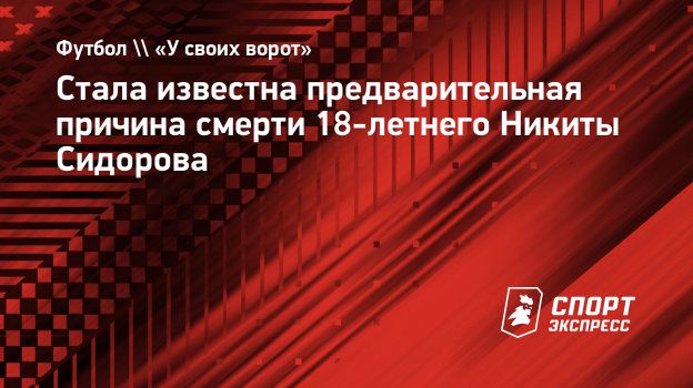 Возможной причиной смерти 18-летнего футболиста молодежной команды «Знамени Труда» Никиты Сидорова стала аневризма сосудов мозга.