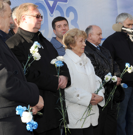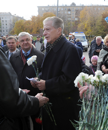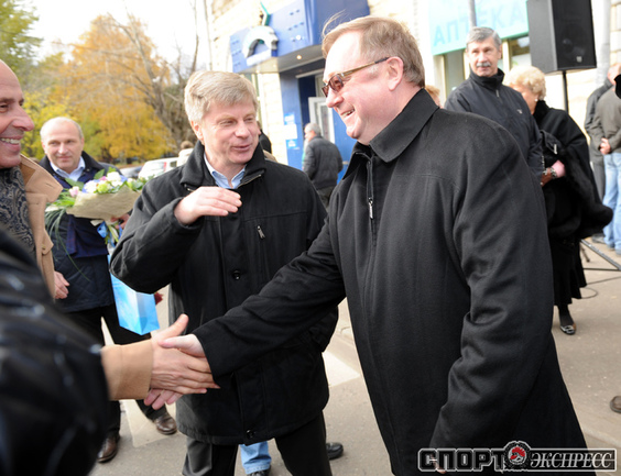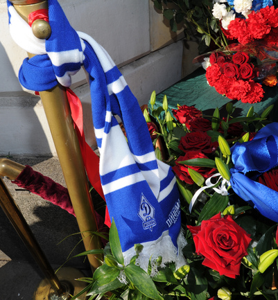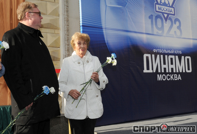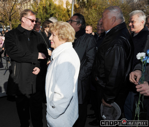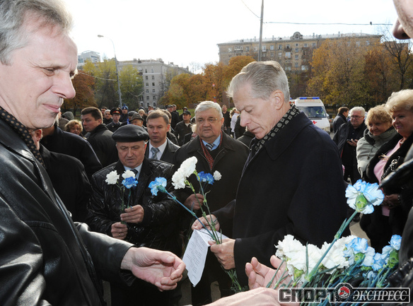 На фасаде дома, где жил прославленный вратарь Лев Яшин, открыли мемориальную доску памяти великого спортсмена. В церемонии открытия приняли участие вдова Яшина Валентина Тимофеевна, президент Российской футбольной премьер-лиги Сергей Прядкин, исполнительный директор РФПЛ Сергей Чебан, а также тренерский штаб "Динамо" во главе с Сергеем Силкиным, руководство и ветераны "Динамо", прославленные советские футболисты. Фото - Татьяна ДОРОГУТИНА, "СЭ"