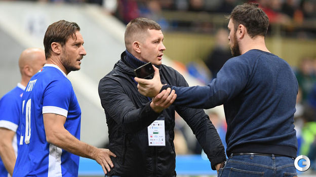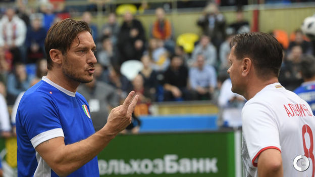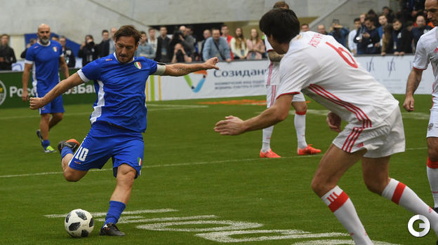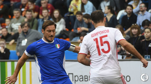 Сборная России обыграла команду Италии со счетом 8:5 и вышла в финал Кубка Легенд. У россиян по два гола забили Роман Широков, Олег Корнаухов и Сергей Кирьяков. Также отличились Алексей Смертин и Роман Павлюченко. В составе Италии дубль оформил легенда "Ромы" Франческо Тотти. Еще по мячу забили Марко Касетти, Кристиан Зенони и Анджело Ди Ливио.